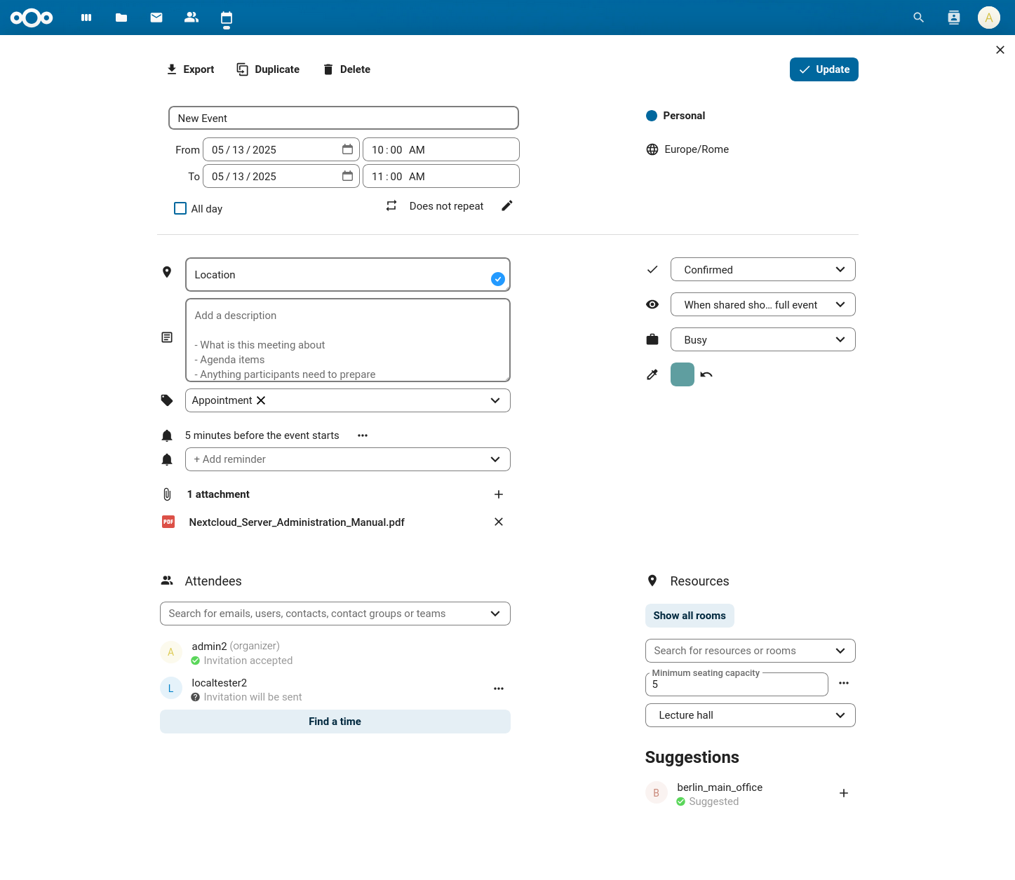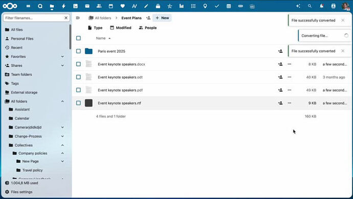Enfin, profitez d’une conversion de fichiers plus facile : vous pouvez maintenant exporter rapidement des fichiers dans un autre format via le menu contextuel sans ouvrir les éditeurs de Nextcloud Office.