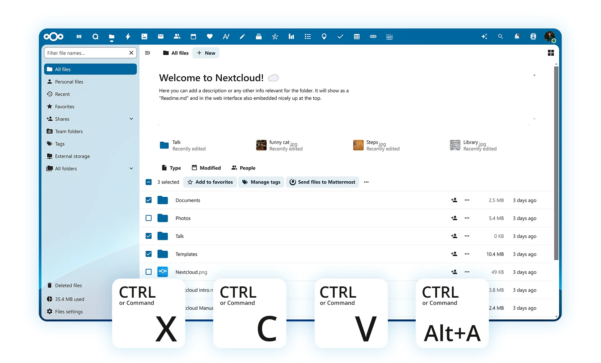 Utilisez les raccourcis claviers « classiques » dans l’application Fichiers.